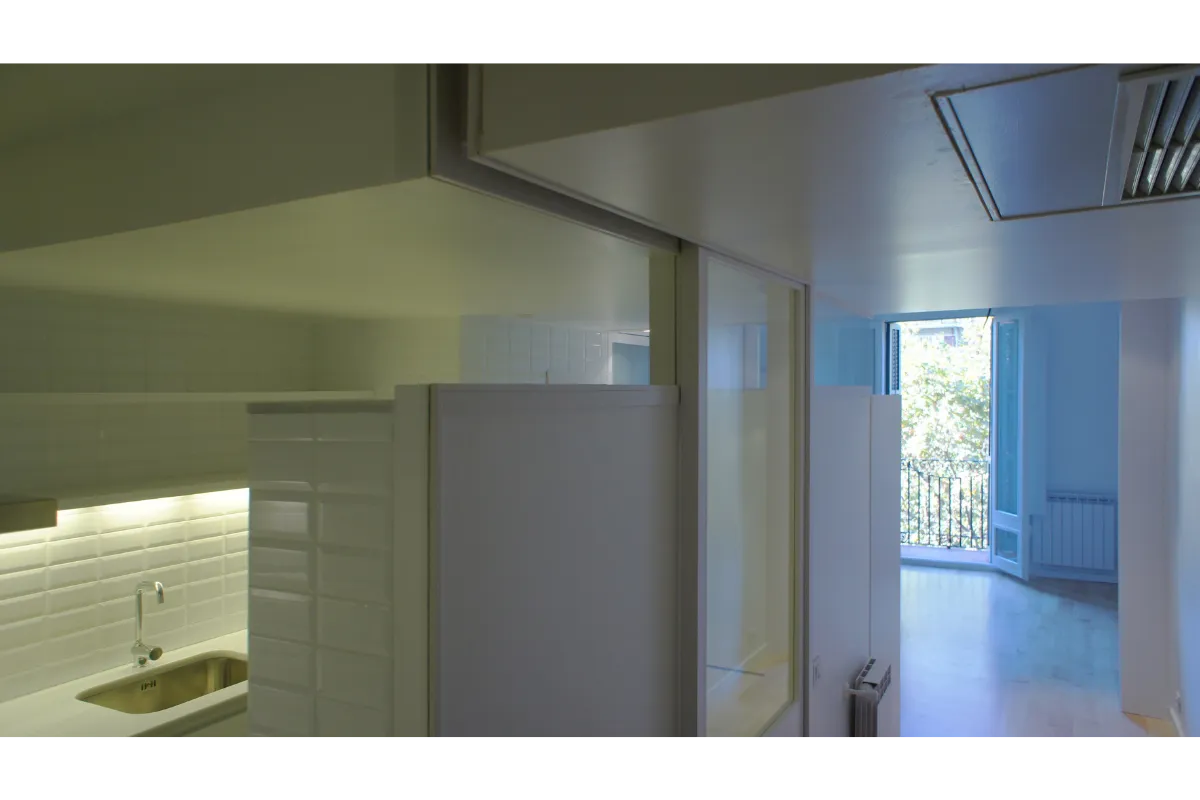 Por otro lado, el piso era el típico del Ensanche barcelonés, es decir estrecho y largo, con un patio intermedio.
