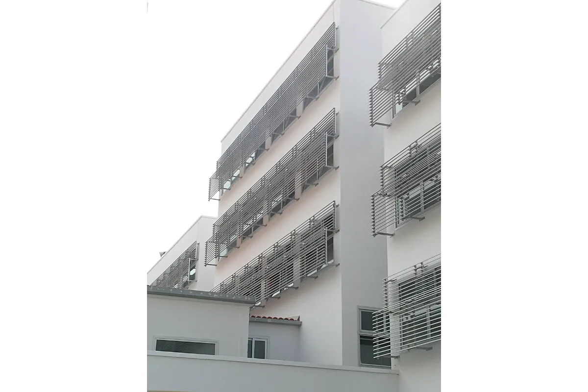 Las actuaciones se realizan en la protección solar de las fachadas y la realización de la planta baja y de una planta tipo, que debía servir como ejemplo para el resto de las plantas restantes.